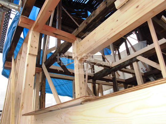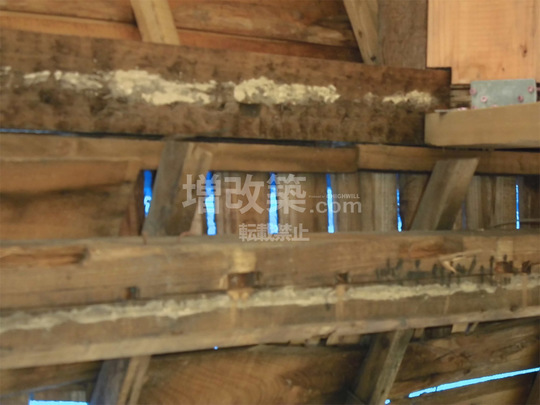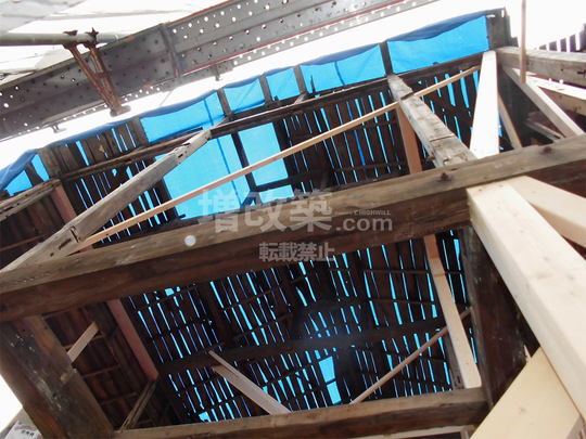 ▲桁行方向の構造体は新たに組みなおす箇所が多数でました。