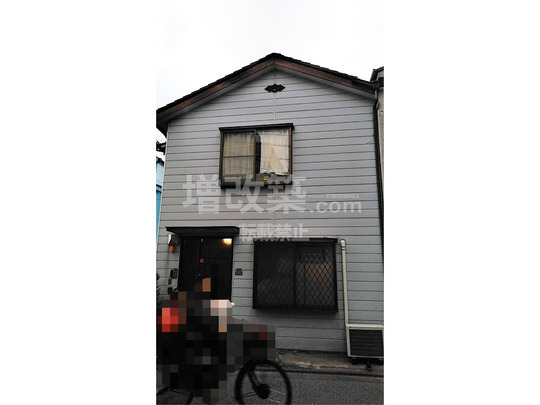 K様邸は区からの道路拡幅整備事業の一環から、セットバックが必要になりましたが、一部の土地を区が買い取る形で減築リノベーションとなっています。ここまでの話を聞くと、ではなぜ新築にしなかったのか?という疑問が生まれます。K様宅の建物のロケーションをみると、写真上の右隣りの隣家との離隔距離がほぼない事がわかります。つまり、新築をしてしまうと、離隔距離までも確保が必要になり、希望されておられる空間が確保できない問題がございました。隣家との離隔距離は15㎝弱という通常では外壁工事ができない状態です。ここで『裏打ち工法』を採用させていただきました。