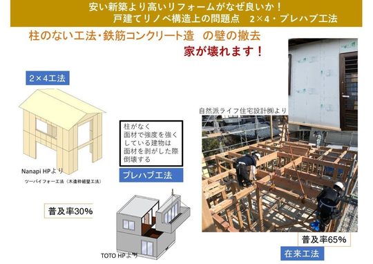 次に「戸建リノベーションの構造上の問題点、2×4、プレハブ工法」についてです。