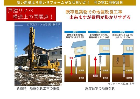 ここでは「戸建リノベーションの問題点、今の家に地盤改良工事」を解説していきます。