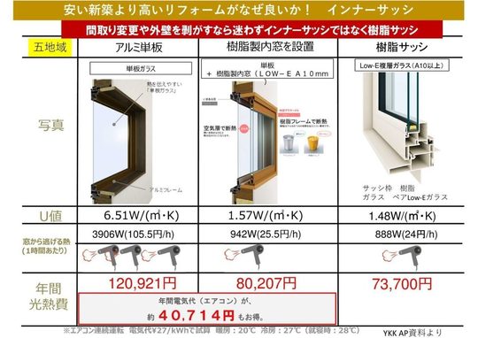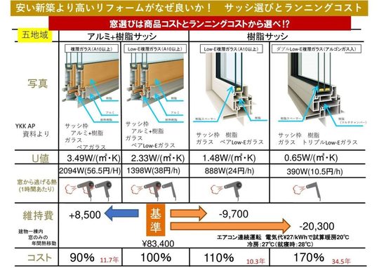 冬と夏の両方の面から商品コストとランニングコストを考えてサッシ選びをして頂ければと思います。
